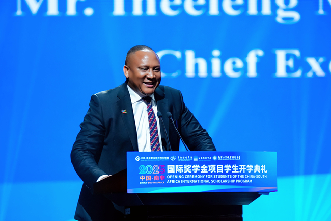 伊内伦·莫莱特在致辞中表示,中国–南非国际奖学金项目是双方多年合作的结晶,也是长期以来共同梦想的实现。他高度评价由中国文化与国际教育交流中心(CCIEEC)、南非地方政府培训署(LGSETA)与保险行业培训署(INSETA)共同构建的三方合作机制,认为这不仅是一次教育项目,更是推动社会转型和青年赋能的重要平台。他介绍,本次项目将支持500名南非青年赴华攻读机电一体化、新能源汽车、跨境电商、建筑工程、计算机技术等专业,助力改善社区服务与国家现代化建设。他寄语青年,要用所学推动南非的发展,同时成为中南友谊的生动见证和中非合作的青春桥梁。