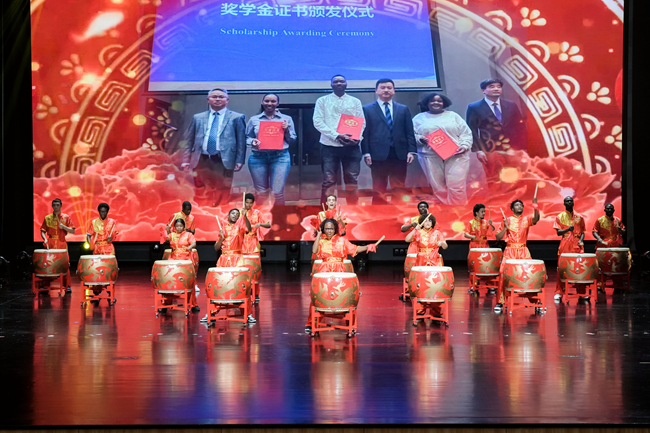 仪式上,中外学生携手登台,带来鼓乐齐奏《我们的大中国》和歌舞表演《茉莉花》。鼓声铿锵、歌声悠扬,舞姿灵动,既展现了中华文化的独特魅力,也诠释了跨文化交流的青春风采。不同肤色、不同语言的青年在同一个舞台同频共振,以艺术之声,奏响了跨越山海、同心携手的青春乐章。
